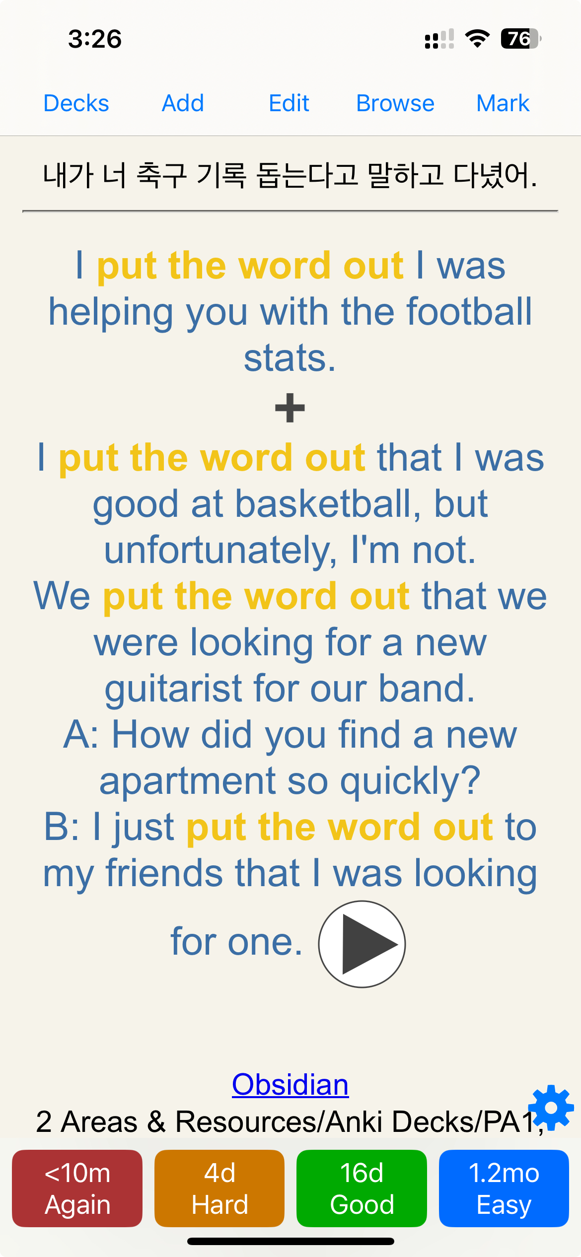 - Easy(쉬움): 너무 쉽게 기억날 때 (그 정도가 아니면 안 누르는 걸 추천)